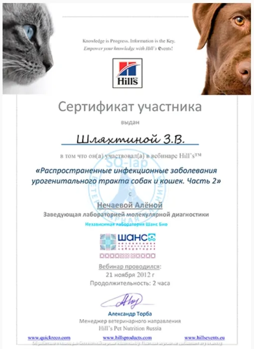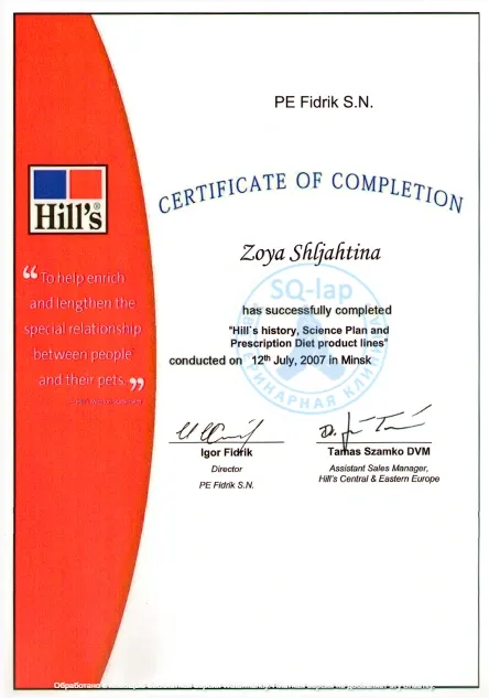 Шляхтина З.В. - Certifacate of completion
